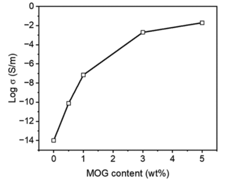 圖8.PP-M基體和PP-M/MOG納米復合材料的電導率。