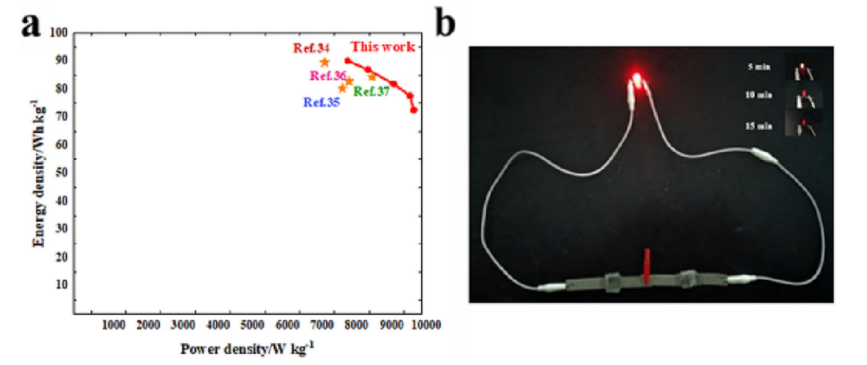 圖9. (a) Ragone圖,(b)兩系列全固態(tài)ASC照明LED圖。