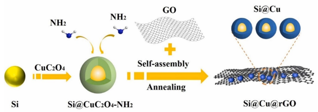 圖1. 核殼Si@Cu/rGO制備示意圖。