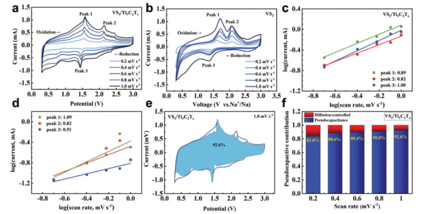 x顯著增強(qiáng)了VS2的電荷轉(zhuǎn)移和體積膨脹,尤其是加入Na