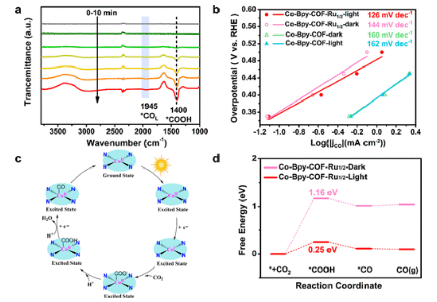 2RR產(chǎn)生CO。最佳Co-BpyCOF-Ru