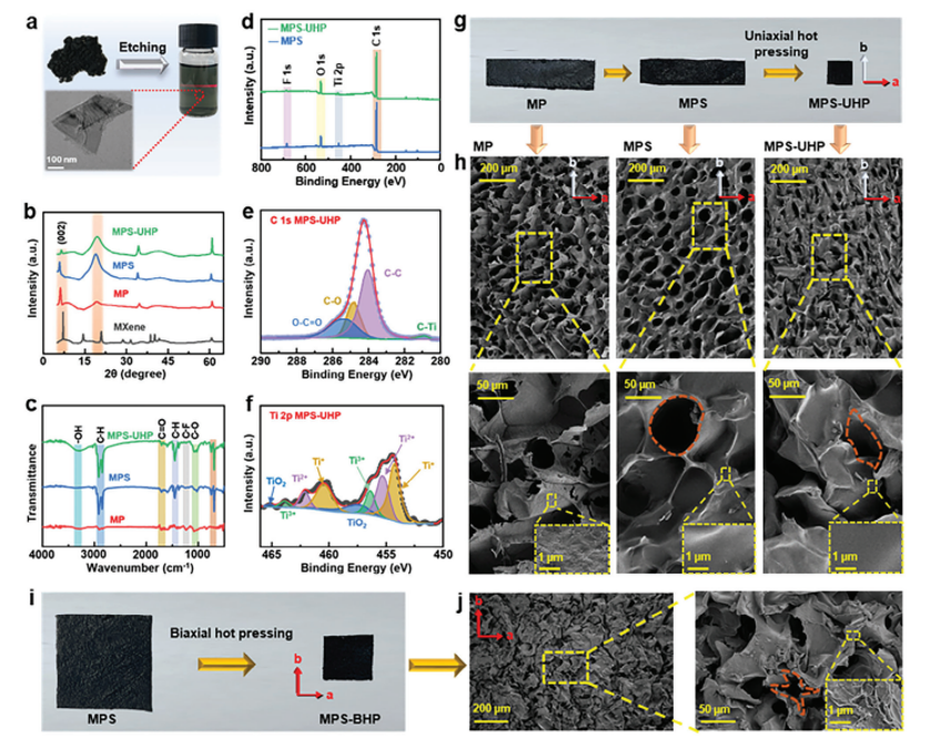 圖1. 可拉伸熱壓MXene基氣凝膠的制備及應(yīng)用。
