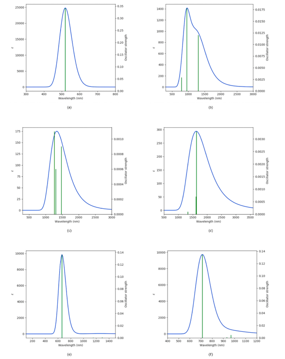 圖6. 使用B3LYP–TD DFT的原始和金屬摻雜石墨烯系統(tǒng)的紫外-可見光譜。