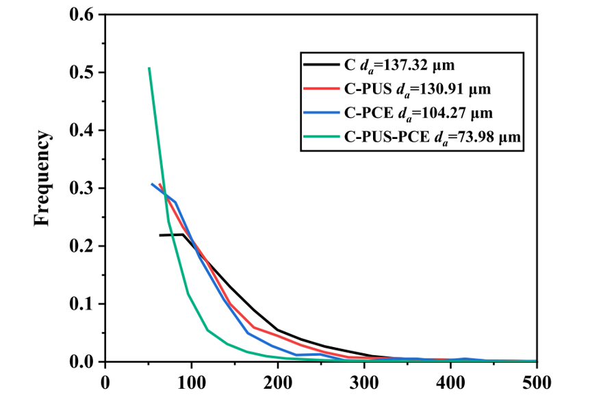 -基團之間的鍵合能力。此外,與對照組相比,應用PUS-輔助混合,1天后氧化石墨烯團塊的平均等效直徑減少了9.9%,1天后彎曲和抗壓強度分別增加了26.6%和3.2%,28天后分別增加了22.7%和12.6%。本研究為納米碳水泥基材料的制備提供了一條新的途徑。
