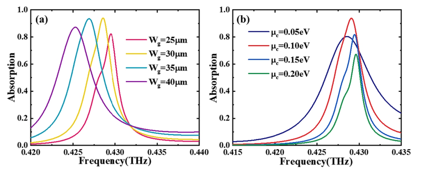圖6. 石墨烯條帶化學(xué)勢對不同折射率值