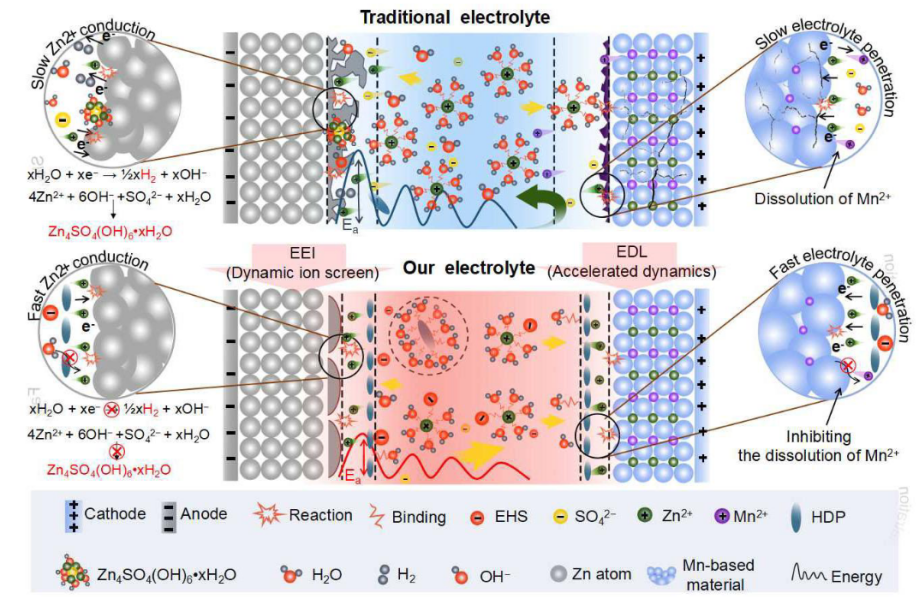Cuiping Han和Hui-Ming Cheng課題組2024年發(fā)表在Angewandte (鏈接: https://doi.org/10.1002/anie.202412853)上。原文:A Dynamically Ion-Sieved Electrolyte towards Ultralong-Lifespan Zn-Ion Batteries