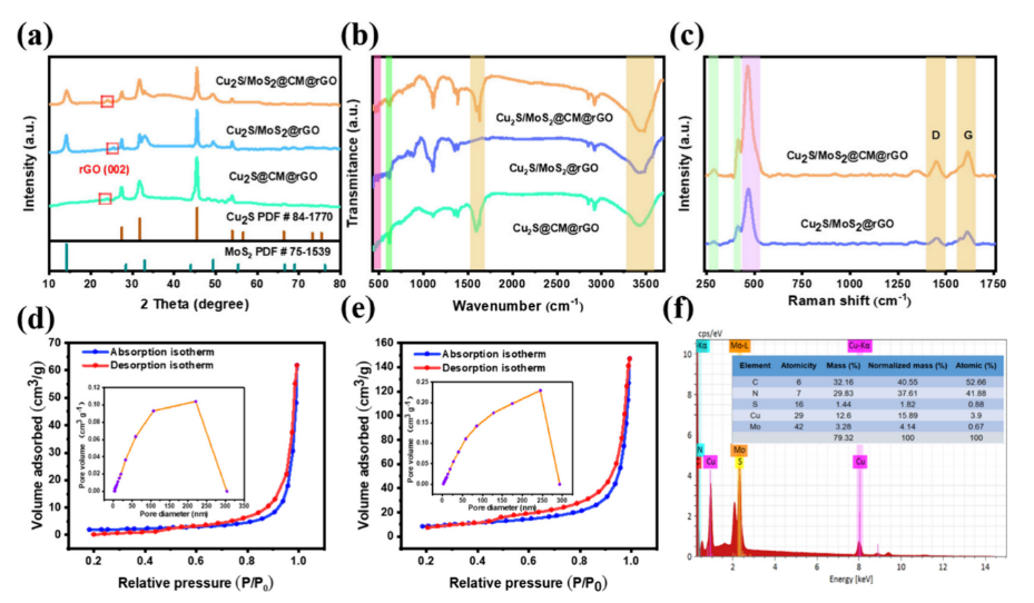 2S/MoS2@rGO的FT-IR光譜。(c) Cu