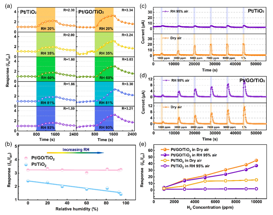 室溫氫傳感器在潮濕空氣中通常會(huì)受到劇烈響應(yīng)下降的影響。針對(duì)H