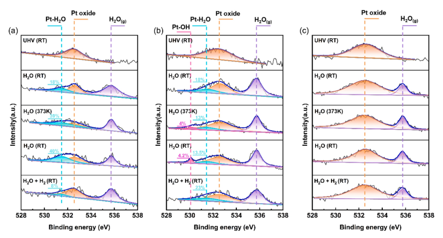 2 的 Pt 表面的 O 1 s 光譜。NAP–XPS 的條件和順序:UHV(298 K,RT)、0.3 mbar H