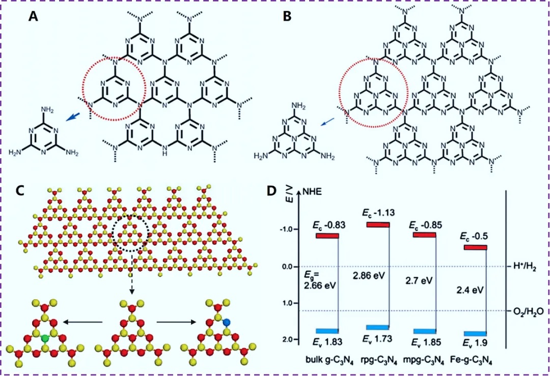 電催化劑,g-C3N4的催化活性是由空位、摻雜、本征缺陷和邊緣修飾引起的電子結構變化引起的。上述方法的結合會引起不同的電子結構變化,從而可以構建