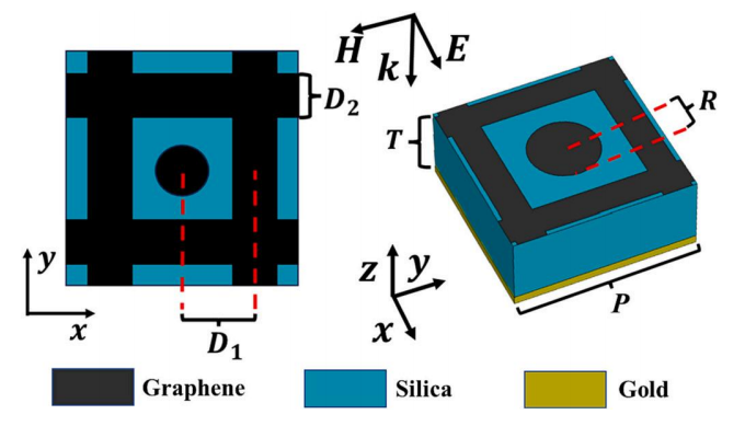 THz技術(shù)在通信、成像及生物醫(yī)學等領(lǐng)域潛力巨大,但受限于功能器件匱乏。傳統(tǒng)吸收器存在帶寬固定、調(diào)節(jié)復雜等問題。石墨烯因其可調(diào)化學勢(通過電學/光學方法調(diào)控)及優(yōu)異光電性能,成為實現(xiàn)可調(diào)THz吸收器的理想材料。