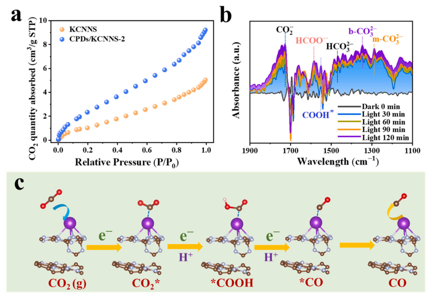 | CPDs 區(qū)域 | 最低未占軌道(LUMO)≈-0.9 eV,最高占據(jù)軌道(HOMO)≈+1.5 eV46 | 富電子LUMO注入CO?反鍵軌道,活化C=O鍵(*CO?→*COOH)4 |