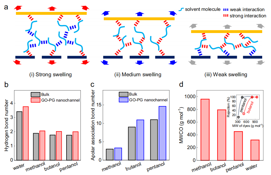 圖5 | GO-PG納米通道中的溶劑-溶劑相互作用