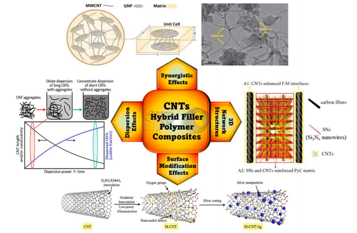 圖1. 碳納米管(CNTs)作為混合填料制備聚合物復(fù)合材料的關(guān)鍵特性。經(jīng)參考文獻(xiàn)許可后重制。