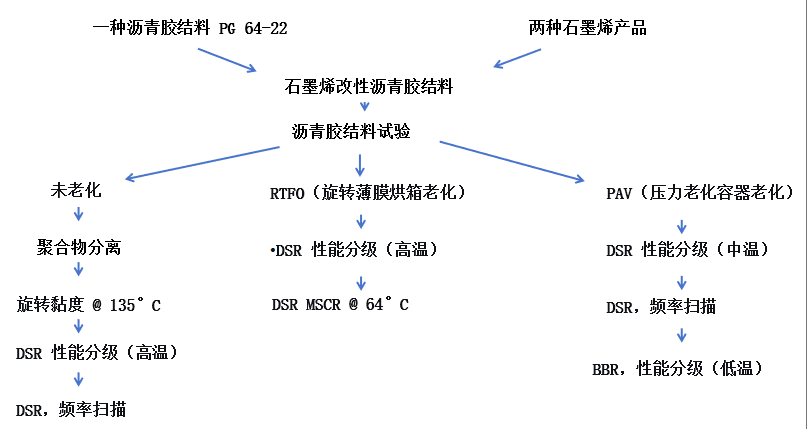 Superpave性能等級(jí)(PG)體系是當(dāng)前瀝青鋪路行業(yè)用于選擇瀝青結(jié)合料的規(guī)范標(biāo)準(zhǔn)。它被美國聯(lián)邦公路運(yùn)輸部以及幾乎所有美國各州交通部所采用。這是一套基于瀝青結(jié)合料流變特性,并結(jié)合鋪裝路面的當(dāng)?shù)貧夂蚝秃奢d條件而制定的性能相關(guān)規(guī)范。在該體系中,每種瀝青結(jié)合料都用兩個(gè)數(shù)字進(jìn)行分級(jí),分別代表該結(jié)合料能分別抵抗車轍和低溫開裂的最高路面溫度和最低路面溫度。例如,PG 64-22 結(jié)合料適用于平均七天最高路面溫度為 64°C 或更低、預(yù)期最低路面溫度為 -22°C 或更高(負(fù)值較小)的地區(qū)。通常,在給定的交通和環(huán)境條件下,PG范圍更寬的瀝青結(jié)合料往往能提供更好的路面性能。聚合物分離是所有類型聚合物改性瀝青的一項(xiàng)重要性能指標(biāo)。該測試旨在確定聚合物(或添加劑)在靜態(tài)加熱儲(chǔ)存條件及隨后的冷凍調(diào)節(jié)期后,從基礎(chǔ)瀝青結(jié)合料中分離的傾向。測試結(jié)果可反映研究中評(píng)估的石墨烯與瀝青結(jié)合料之間的相容程度。