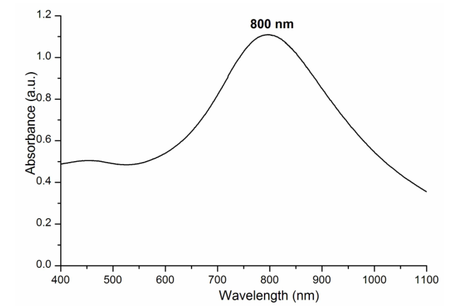 紫外-可見(jiàn)-近紅外光消光譜呈單峰,位置在 700~800 nm 之間。