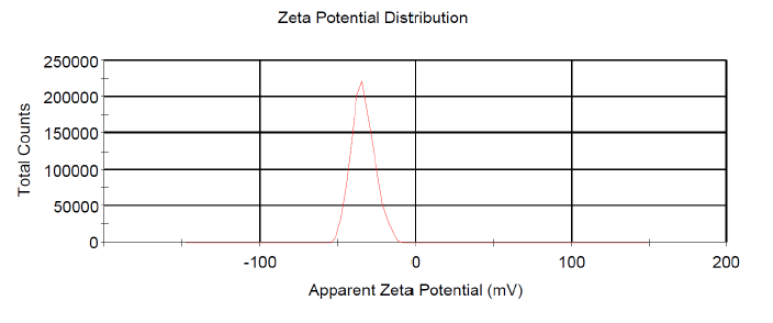 水動力尺寸約50 nm、150 nm、200 nm 表面電位約+50 mV |